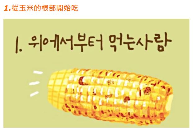 你認為自己是怎樣的人呢?在別人眼中的你,又呈現出什麼模樣呢?最近韓網正瘋傳一個有趣的心理測驗,只要「吃一根玉米」就能秒洞悉你的人格特質,快測看看你是屬於哪一種類型吧~